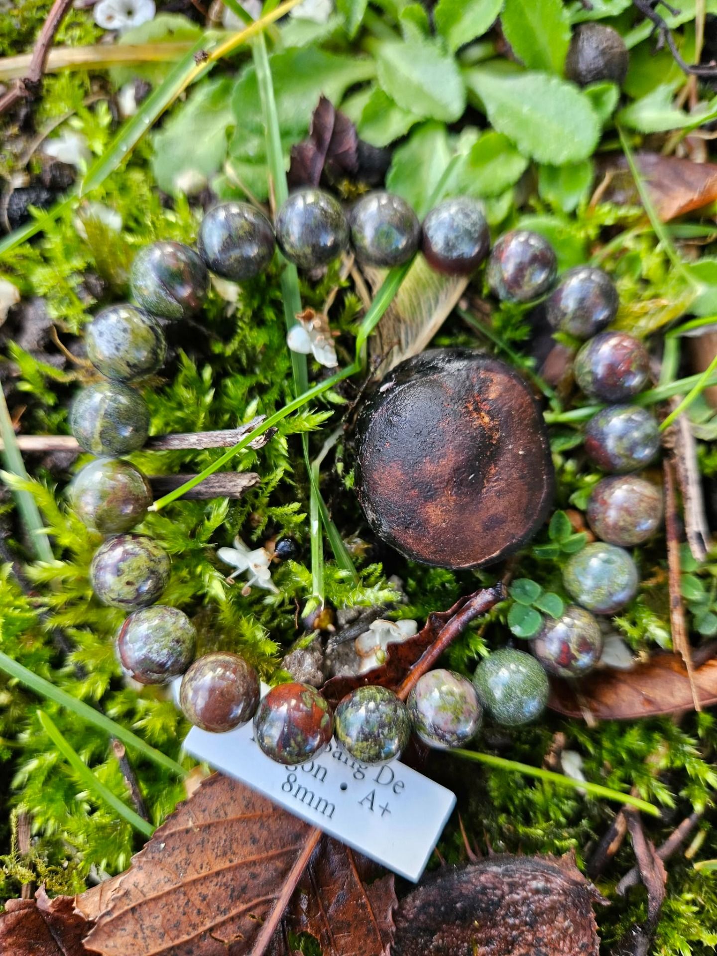 Boules 8mm. Tour de poignet 16-18. On peut remarquer des nuances de couleur et de veinage.